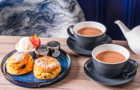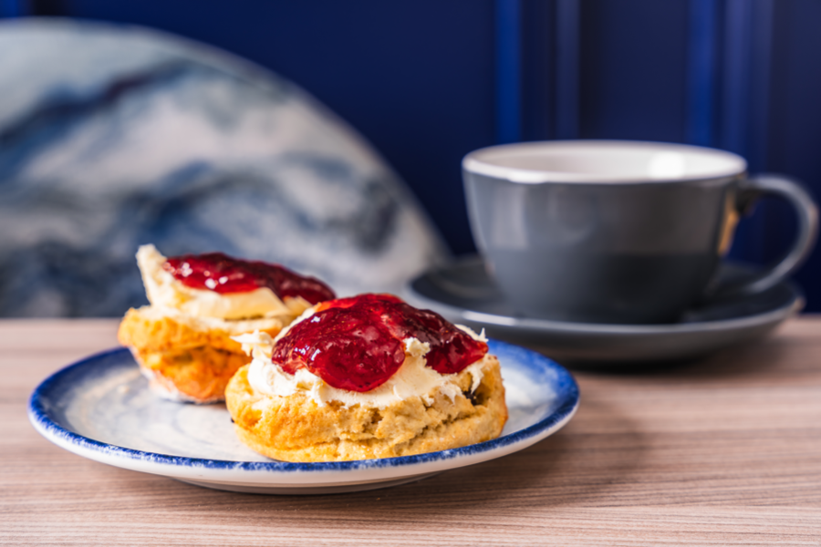 Enjoy a Choice of Fruit or Plain Homemade Scone, Strawberry Jam, Clotted Cream with a Pot of Tea or Coffee.